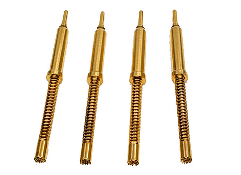 結構設計特點:大電流場景下,電流產生的電磁力和發(fā)熱可能導致探針變形或接觸松動,因此結構設計需滿足機械穩(wěn)定性和壓力一致性。探針內部通常包含彈簧,如鈹銅彈簧,通過預壓縮提供穩(wěn)定的接觸壓力,探針外殼采用高強度材料,如不銹鋼,避免大電流產生的磁流路徑的穩(wěn)定性。