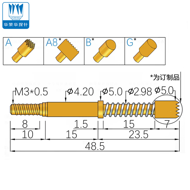 這兩種探針設計有特定的工作行程和彈簧力,使其能夠應對高達50A或更高的持續(xù)電流。這些探針的結(jié)構(gòu)設計通常包含高質(zhì)量材料,如鍍金的針桿和針管,以提高導電性能和耐腐蝕性,確保長期穩(wěn)定和可靠的測試結(jié)果3。