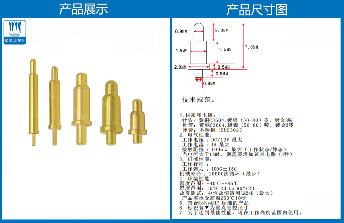 產(chǎn)品介紹:這個(gè)針通常用于智能手表,藍(lán)牙耳機(jī)上的有充電的功能,但是探針總體來說還是測(cè)試的