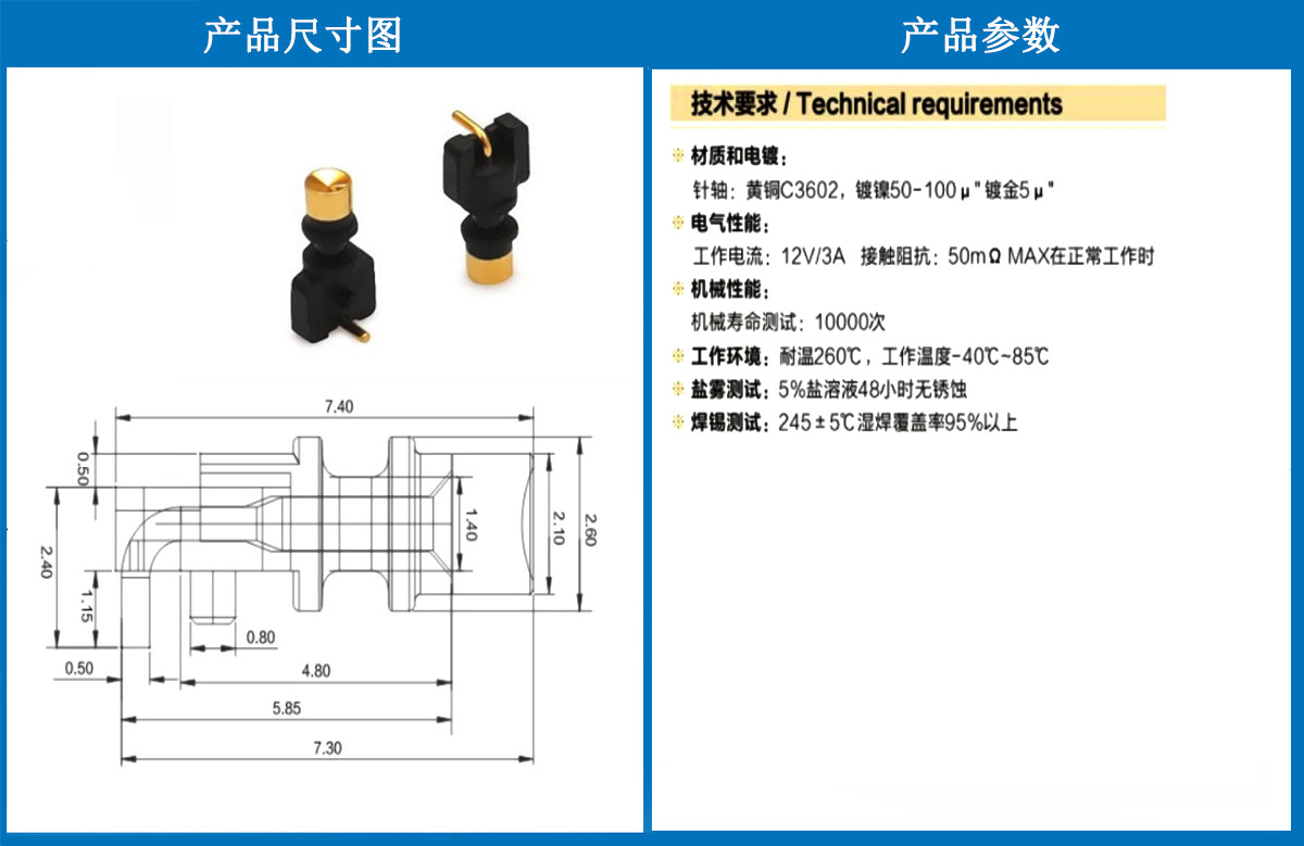 產(chǎn)品介紹:這個(gè)針通常用于智能手表,藍(lán)牙耳機(jī)上的有充電的功能,但是探針總體來說還是測(cè)試的