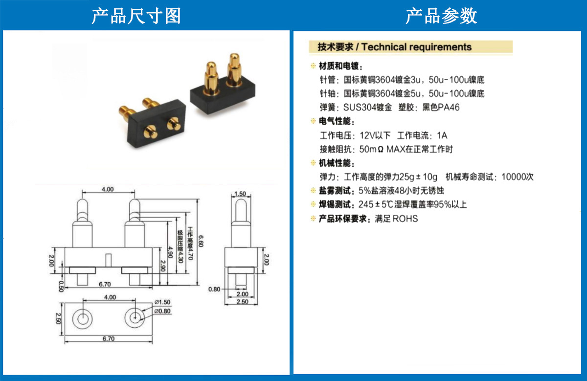 產(chǎn)品介紹:這個針通常用于智能手表,藍(lán)牙耳機(jī)上的有充電的功能,但是探針總體來說還是測試的