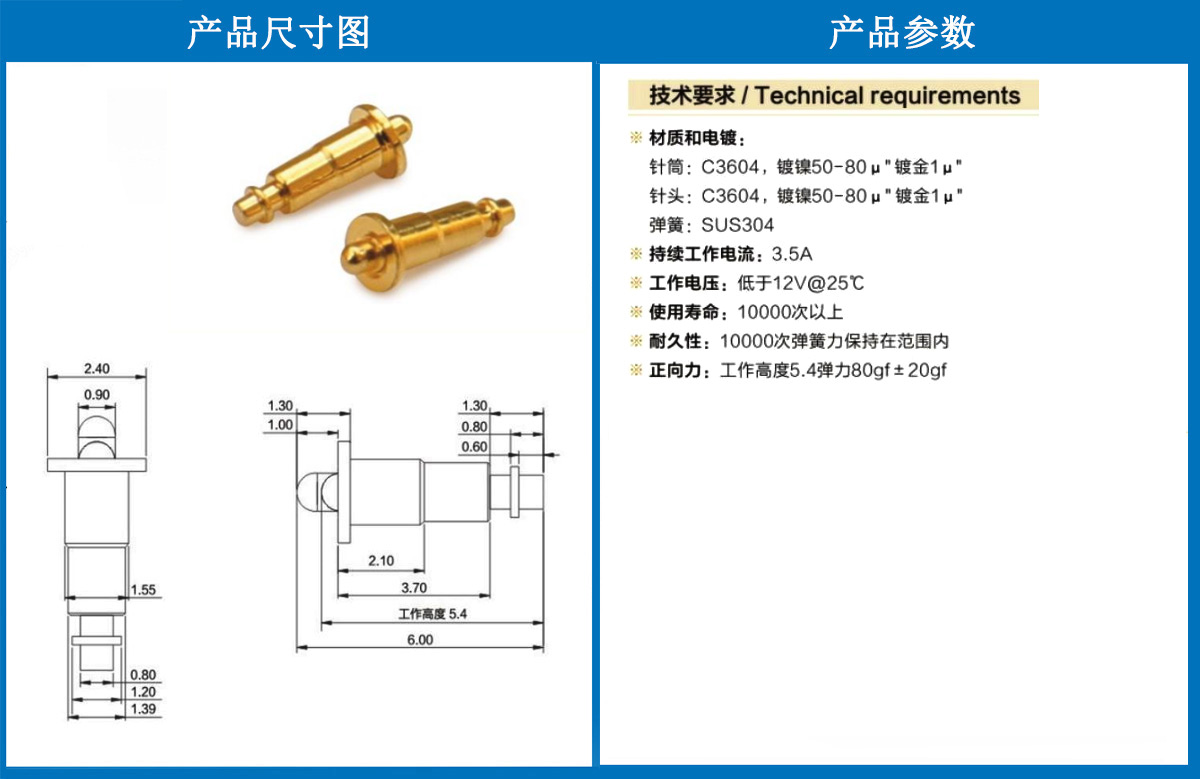 產(chǎn)品介紹:這個(gè)針通常用于智能手表,藍(lán)牙耳機(jī)上的有充電的功能,但是探針總體來(lái)說(shuō)還是測(cè)試的