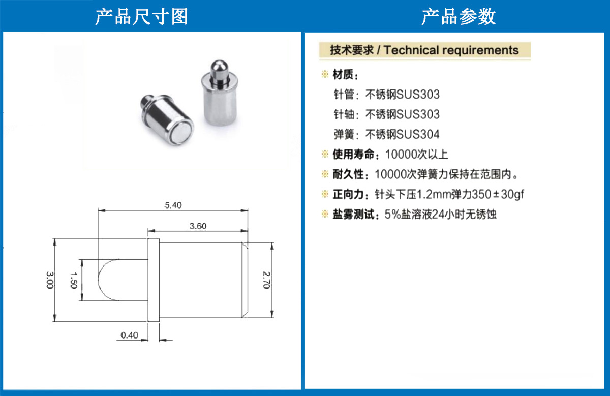 3.0*5.4電極針 當(dāng)前位置:首頁(yè) » POGO PIN充電彈簧頂針 » 電極針