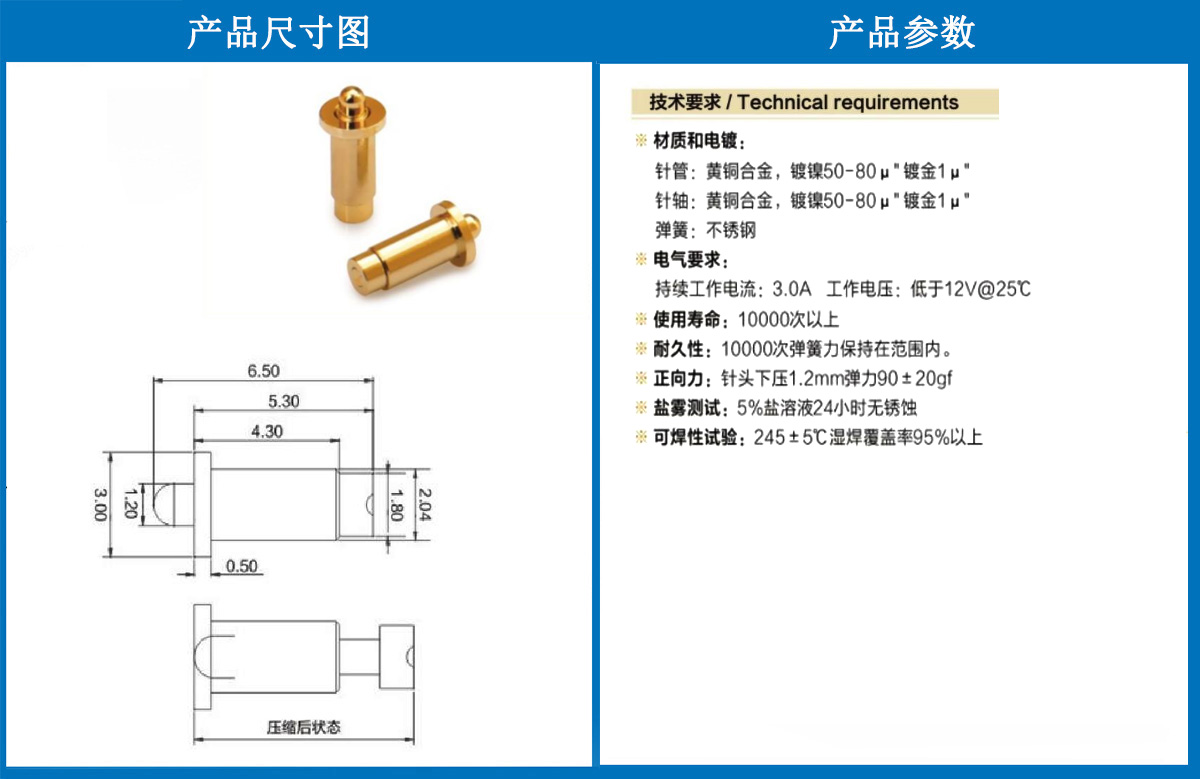 3.0*6.5電極針 當(dāng)前位置:首頁 » POGO PIN充電彈簧頂針 » 電極針