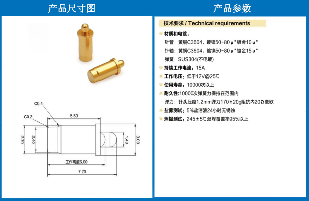 3.0*7.20電極針 當(dāng)前位置:首頁 » POGO PIN充電彈簧頂針 » 電極針