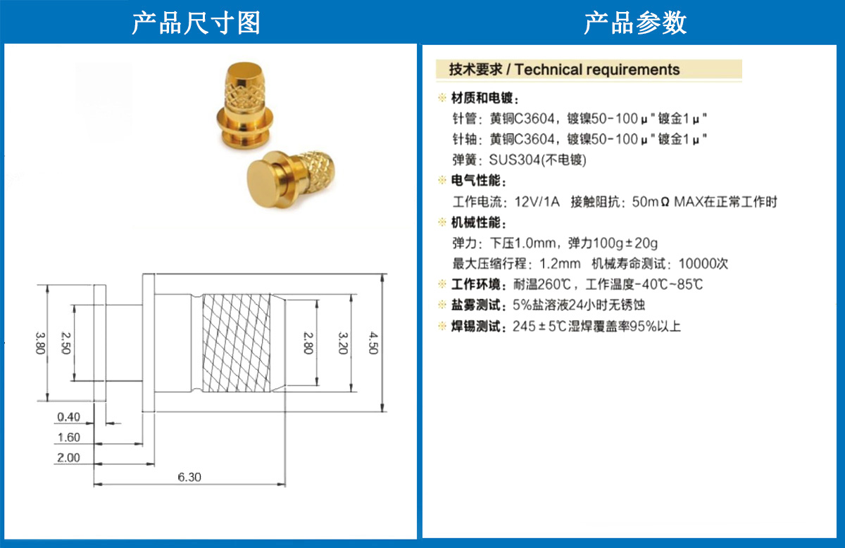 產(chǎn)品介紹:這個(gè)針通常用于智能手表,藍(lán)牙耳機(jī)上的有充電的功能,但是探針總體來(lái)說(shuō)還是測(cè)試的