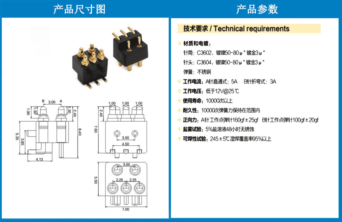 產(chǎn)品介紹:這個(gè)針通常用于智能手表,藍(lán)牙耳機(jī)上的有充電的功能,但是探針總體來(lái)說(shuō)還是測(cè)試的