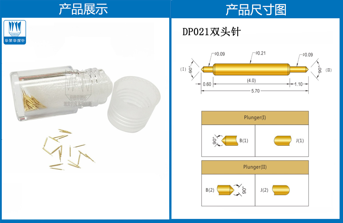 產(chǎn)品頭型:探針外徑為0.21mm,總長(zhǎng)度為5.7mm