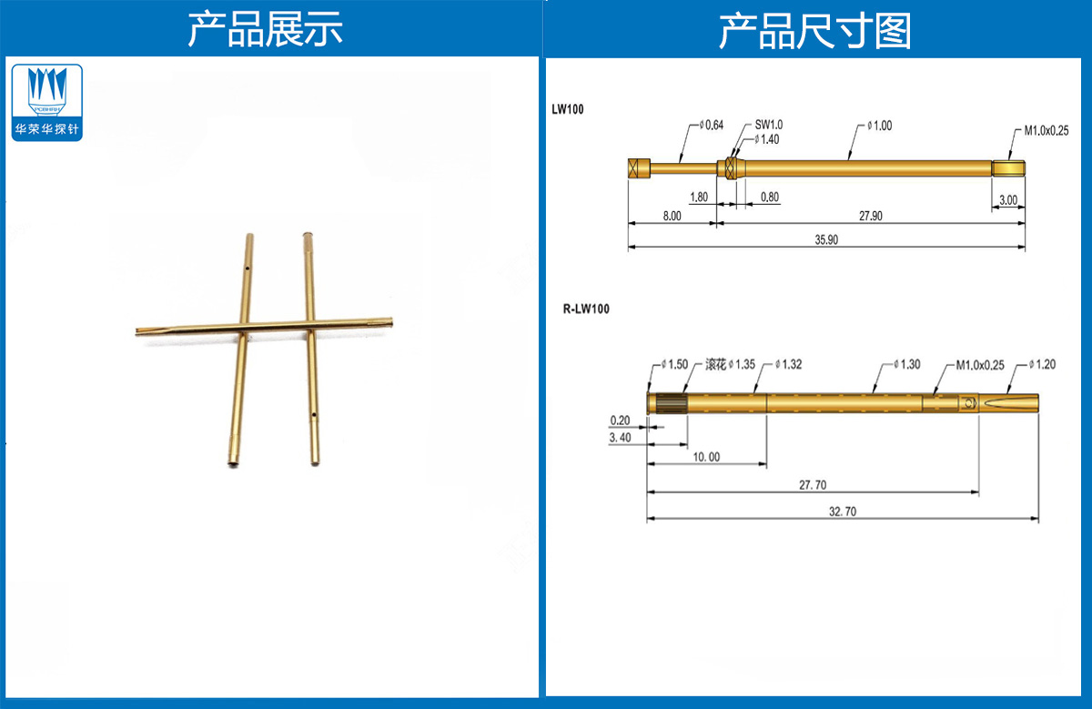 產(chǎn)品簡(jiǎn)介:R-LW100線束針套,1.30mm測(cè)試針套、總長(zhǎng)32.70mm、彈簧針、頂針、探針
