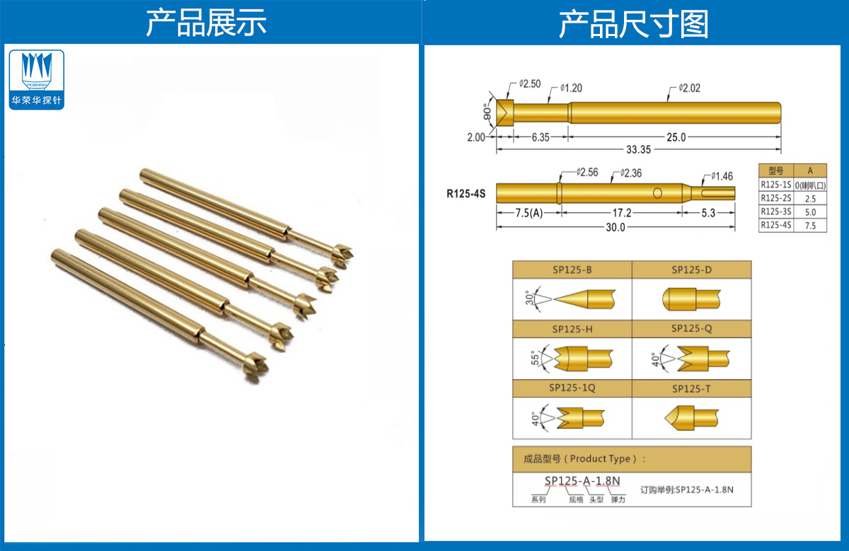 產(chǎn)品簡(jiǎn)介:SP125探針、2.02mm測(cè)試針、總長(zhǎng)33.35mm、彈簧針、測(cè)試針、頂針